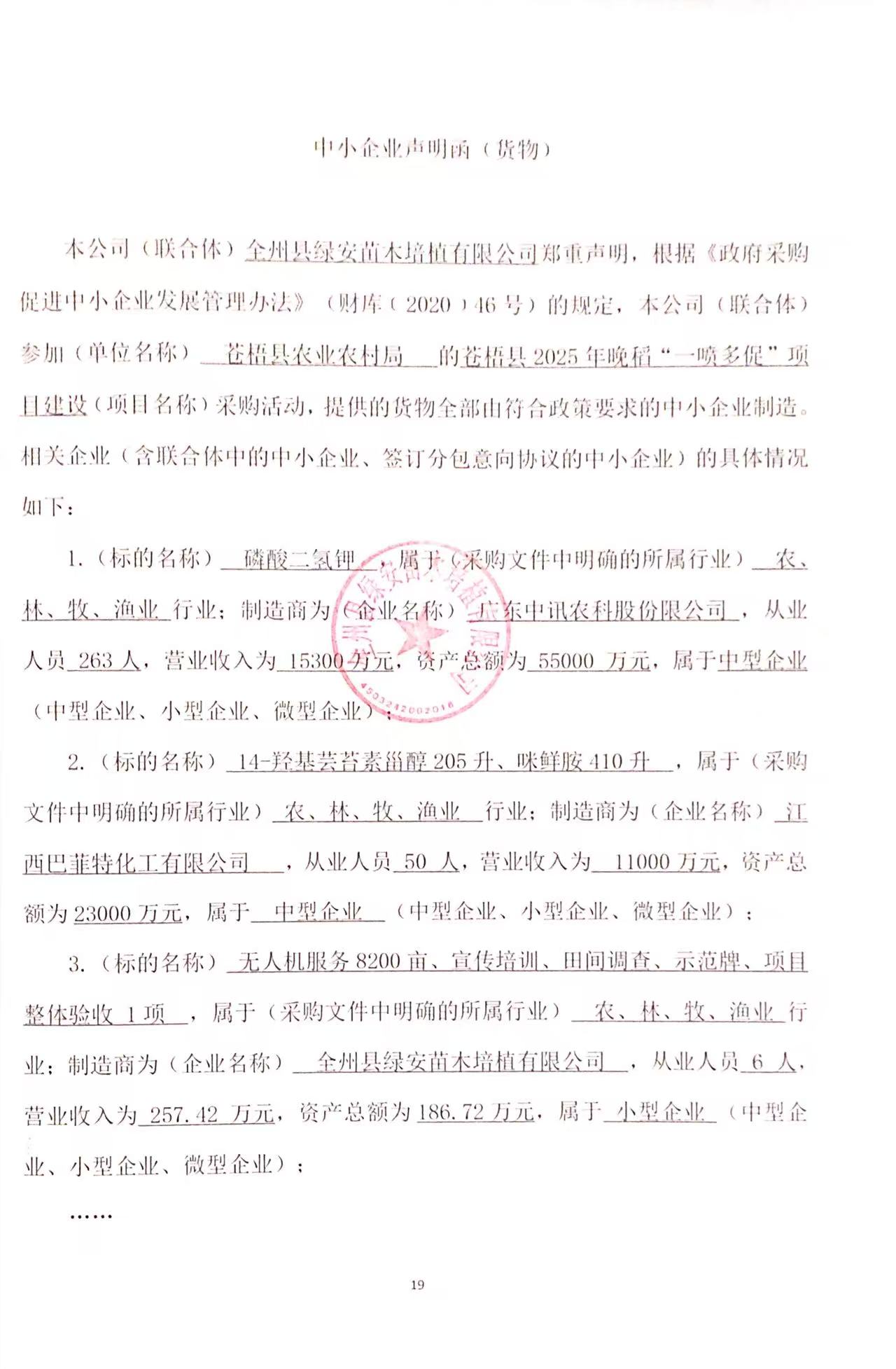 二、項目名稱:蒼梧縣2025年晚稻“一噴多促”項目建設(shè)